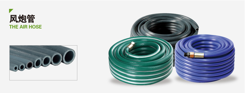 風(fēng)炮管內(nèi)層為抗撕裂聚氯乙烯,中間層編織24股特高拉力聚酯增強線,外層為抗紫外線耐摩擦聚乙烯,表面為啞光磨砂狀。本產(chǎn)品在-28℃時只會硬化而不會脆化,在60℃的工作環(huán)境中不會軟化變形。產(chǎn)品質(zhì)量輕、質(zhì)地柔軟、便于操作。外表啞面處理,不易沾灰,便于清潔。適用于各種高、低壓氣動工具。可按照客戶要求,搭配不同規(guī)格接頭,也可制成不同顏色或長度。